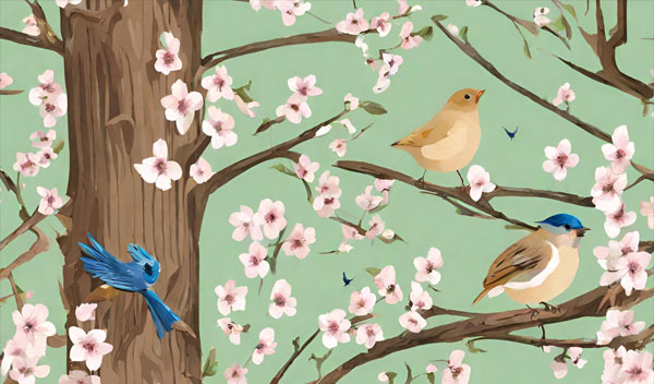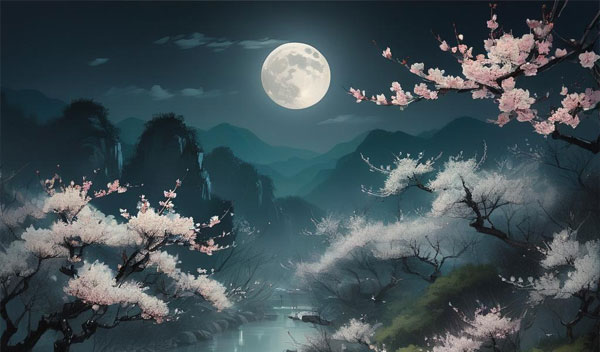 Spring Blossoms on a Moonlit River